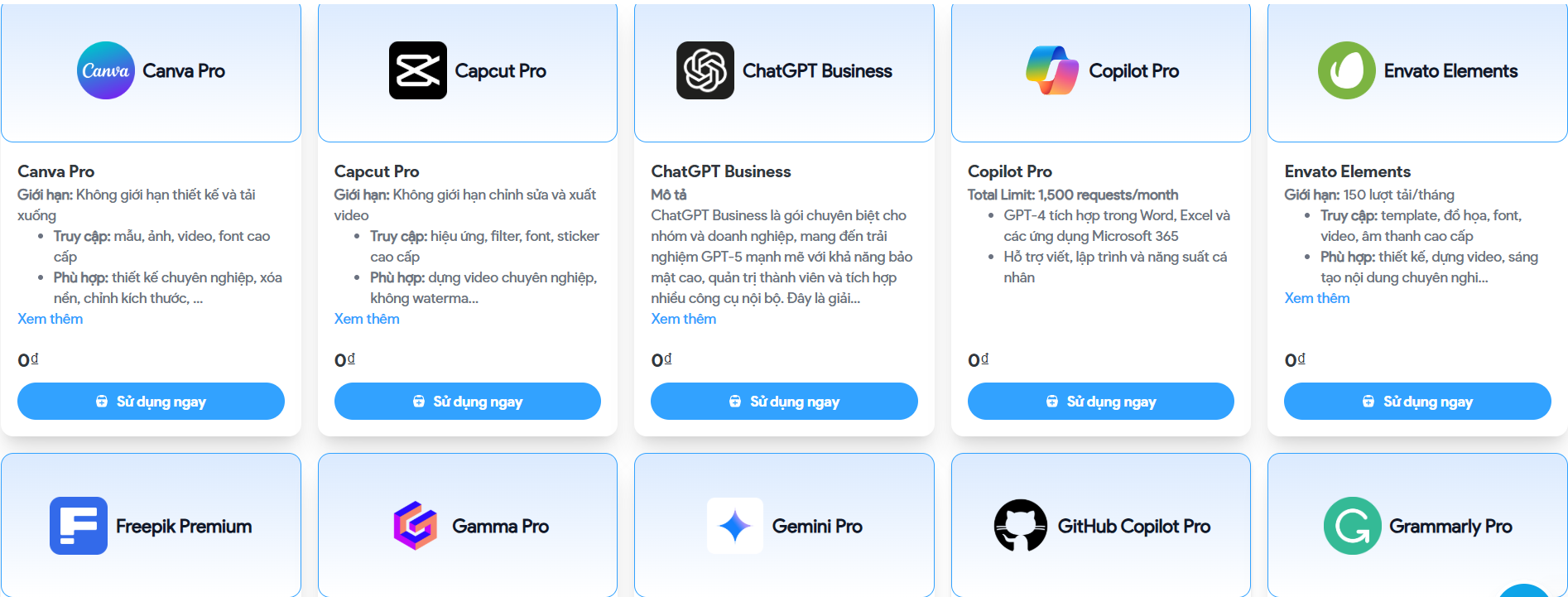 Hiện CentriX tích hợp sẵn các công cụ phổ biến như ChatGPT, Canva, CapCut, Notion, Google Drive, Semrush, Freepik, Zoom… và sẽ liên tục mở rộng theo nhu cầu doanh nghiệp. Ngoài ra, chúng tôi cũng có thể custom các gói dịch vụ theo nhu cầu của từng phòng ban để tối ưu chi phí và mục đích sử dụng