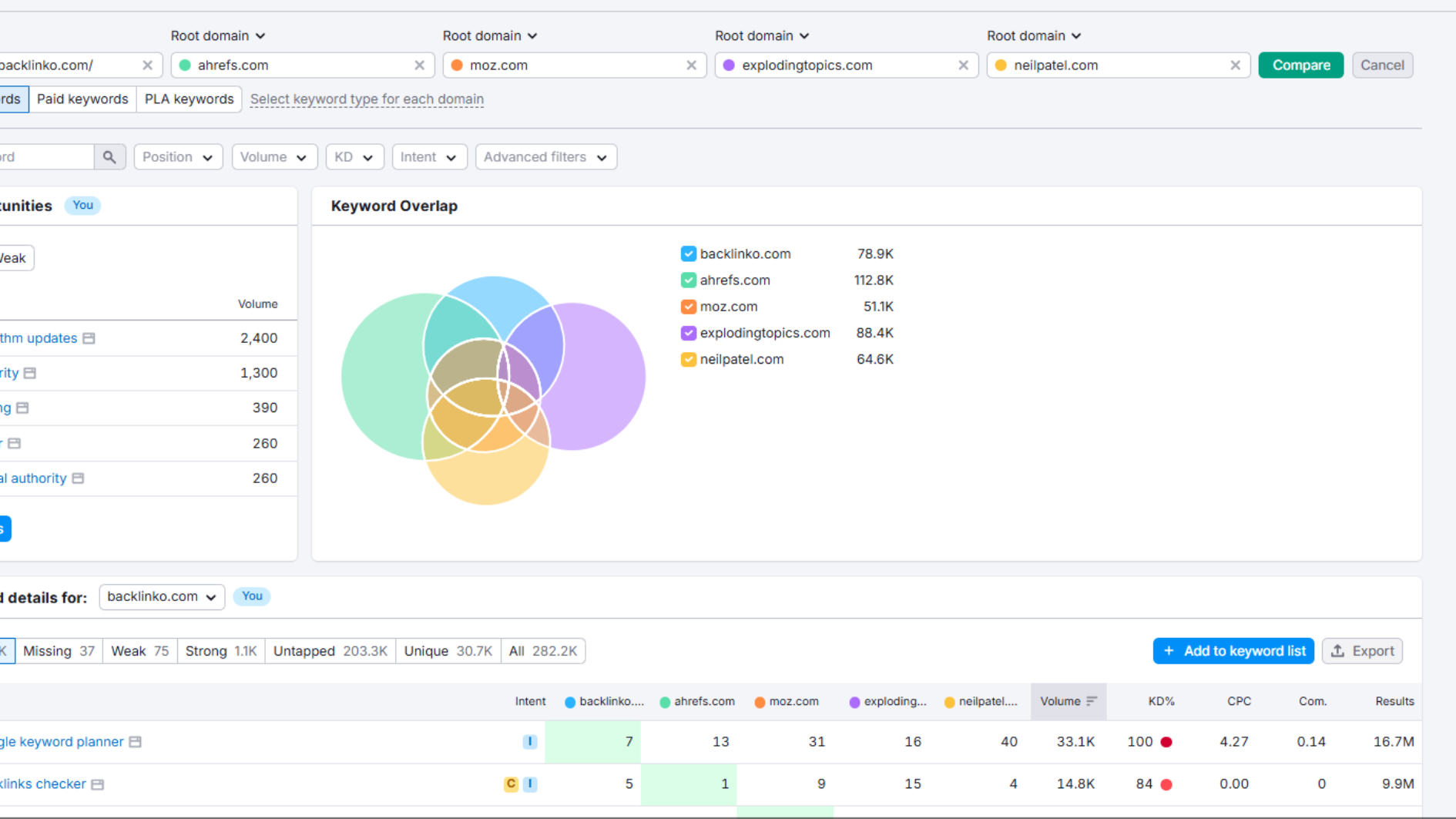 Keyword Gap là một trong những công cụ quan trọng nhất khi phân tích đối thủ, bởi vì nó giúp bạn nhanh chóng xác định những từ khóa mà bạn đang bỏ lỡ.