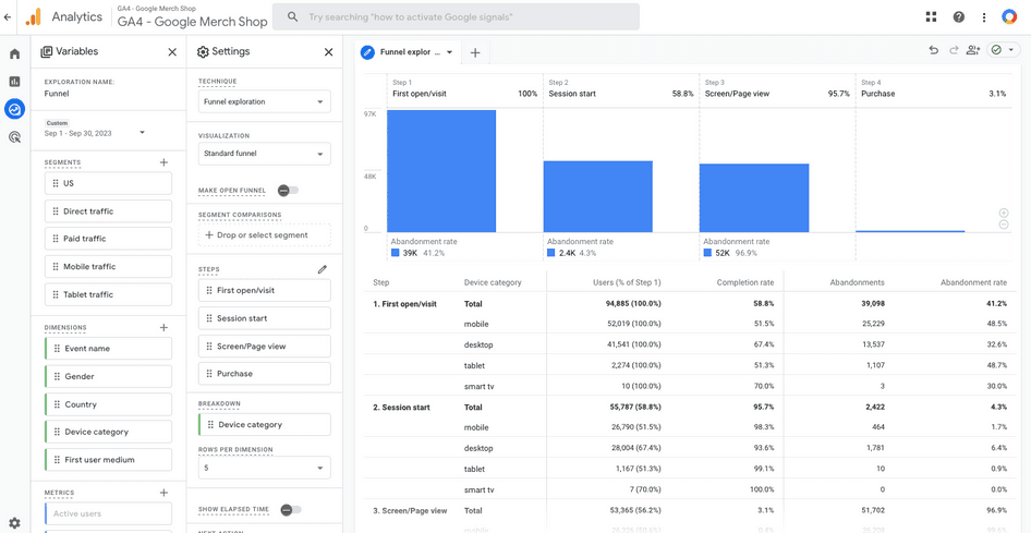 Explorations là tính năng mạnh nhất của GA4, giúp bạn tạo các báo cáo chuyên sâu: