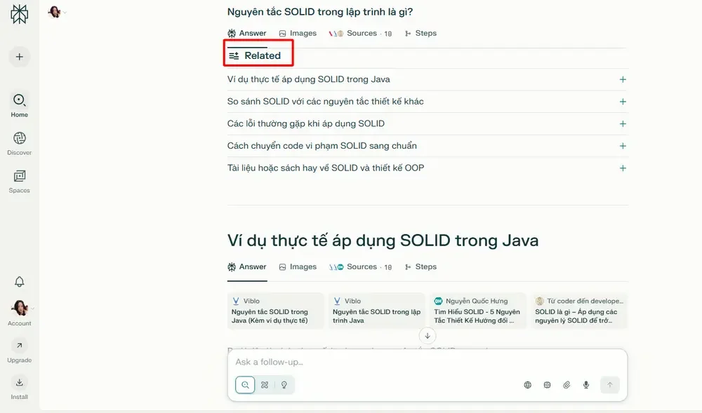 Đây là tính năng giúp Perplexity AI nổi bật: mỗi câu trả lời đều có trích dẫn link gốc.