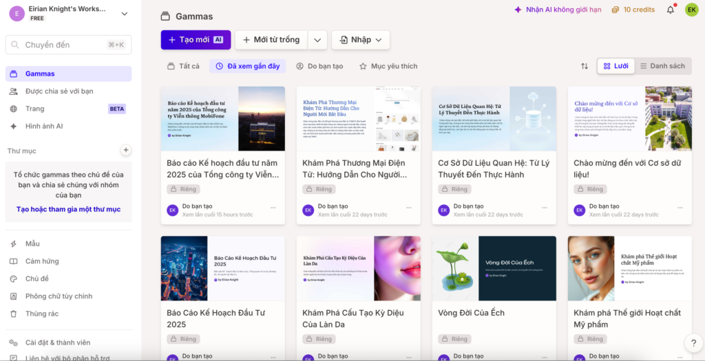 Trong vài chục giây, Gamma Pro sẽ trả về một bộ slide với tiêu đề rõ ràng, nội dung được chia nhỏ hợp lý, biểu đồ gợi ý phù hợp với số liệu marketing. Điều này giúp marketer tập trung vào việc kiểm tra insight và thông điệp, thay vì loay hoay với bố cục.